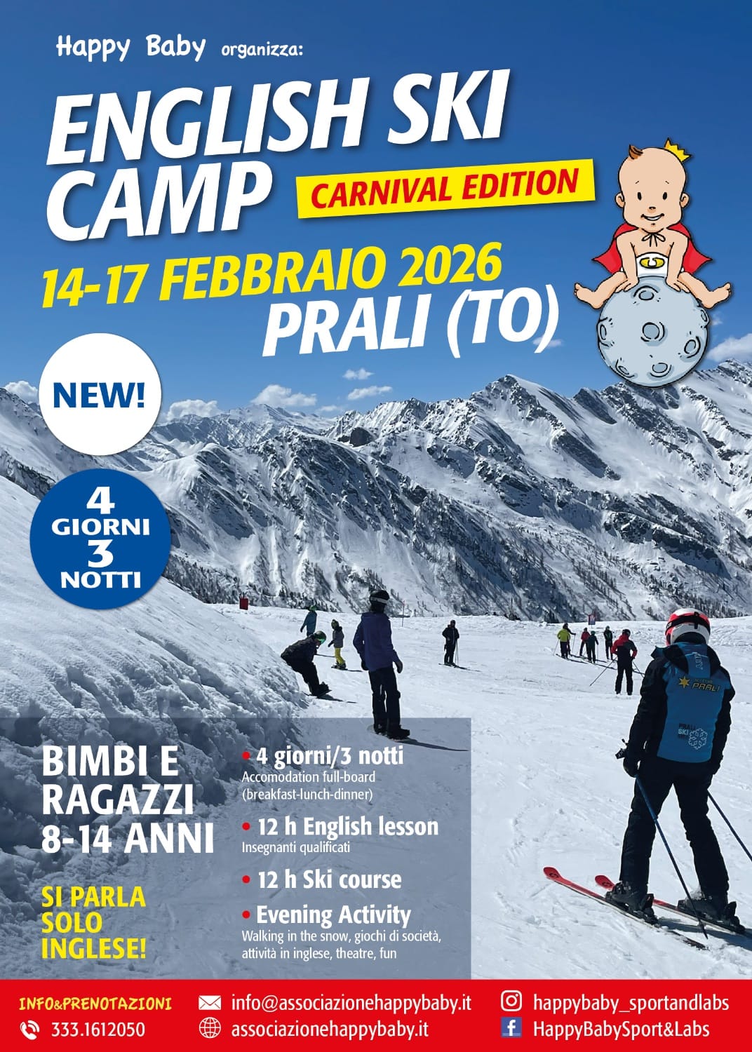 English Ski Camp – Prali , 4 giornate ricche di attività in inglese, e attività in natura, tra sci ed escursioni immersi nel meraviglioso paesaggio di Prali , per bambini e ragazzi dagli 8 ai 14 anni. 4 giorni e 3 notti per un'esperienza unica nel suo genere dove lo sport, la natura, la formazione e l'apprendimento, ma soprattutto l'amicizia, il gruppo e la socialità saranno i protagonisti delle giornate.