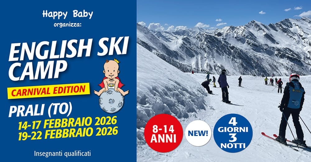 Dal 14 al 17 febbraio 2026, durante le vacanze di Carnevale, 4 giorni e 3 notti tra sport, natura e full immersion in inglese, immersi nel paesaggio innevato di Prali (TO).