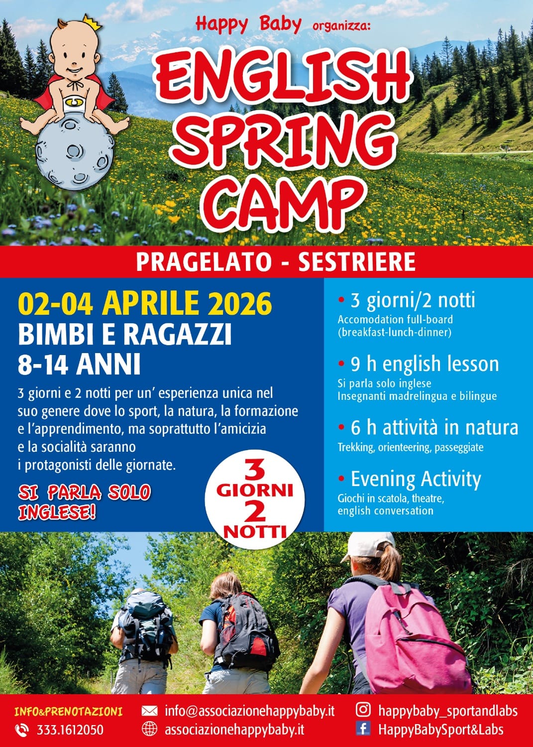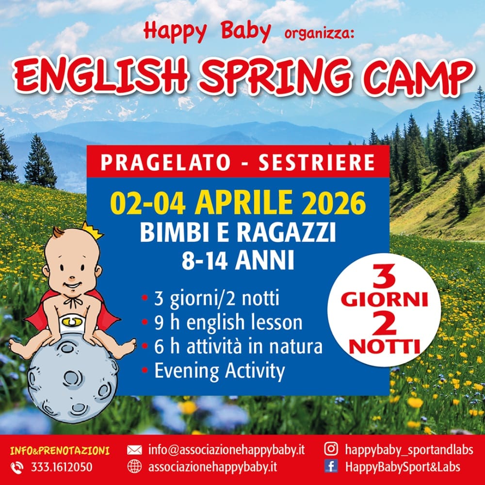 English Spring Camp - Pragelato, 3 giornate ricche di attività in inglese e attività in natura, tra trekking, orienteering e passeggiate, immersi nel meraviglioso paesaggio di Pragelato-Sestriere, per bambini e ragazzi dai 8 ai 14 anni.